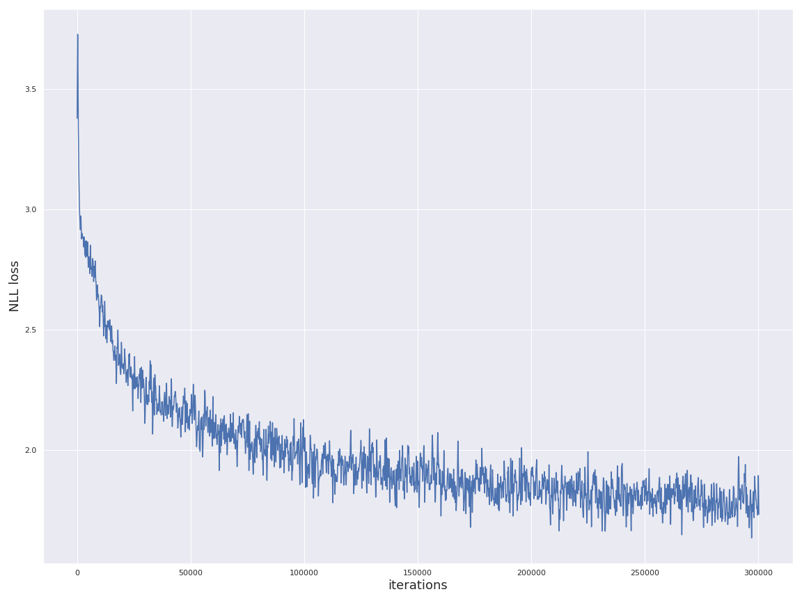 We could, of course, let the model run for longer on the naming dataset, and probably reduce this loss a bit more.